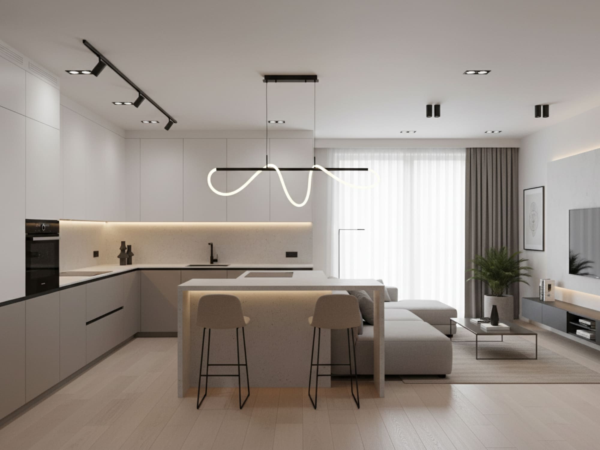 Минимализм в светильниках — это лаконичные формы, чистые линии и отсутствие лишних деталей, где функциональность сливается с эстетикой. Предпочитаются нейтральные материалы — матовый металл, матовое стекло, дерево или бетон — в приглушённых тонах (белый, чёрный, серый, бежевый). Освещение создаёт мягкий, рассеянный свет, подчёркивая простоту и гармонию пространства.