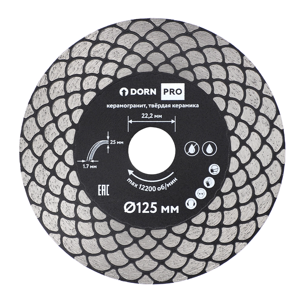 Диск алмазный 125x1,7x22,2 мм по керамограниту рез/заусовка под 45° DORN PRO