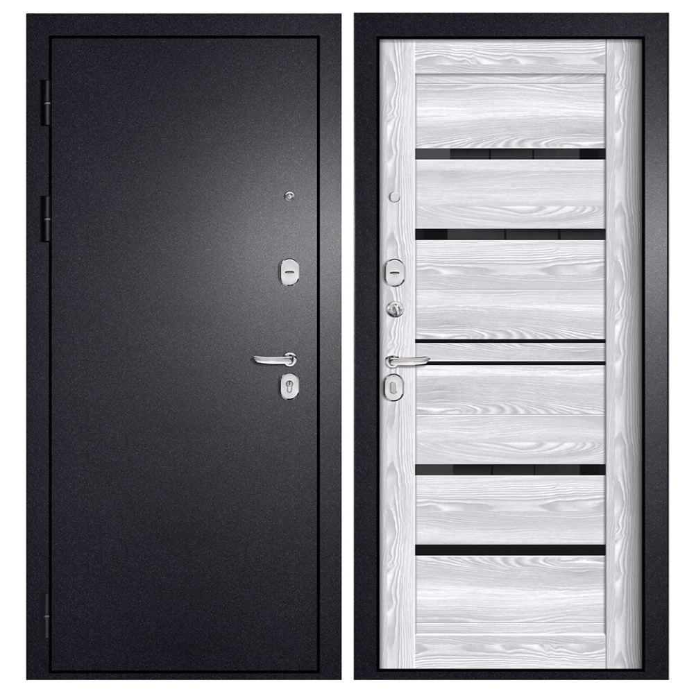 Дверь входная металлическая Тепла-2 Букле черный/Ривьера Айс 2050х860х90 мм левая