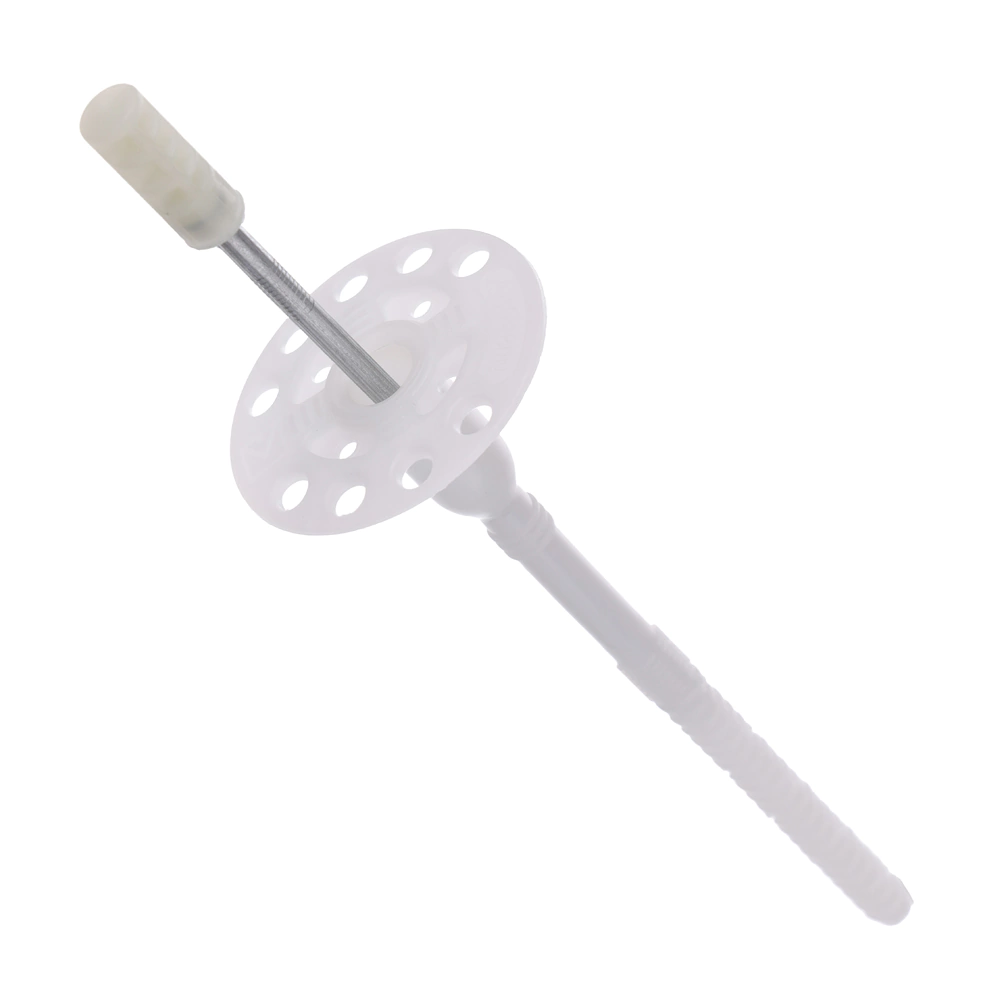 Дюбель обеспечивает плотную фиксацию теплоизоляции к основанию. Места крепления дюбелями остаются незаметными. При этом дюбель не утопает в теплоизоляционных материалах, а ровно держится на поверхности. Пластиковый стержень для дюбеля подходит как для крепления сплошных плит, так и для отделочных материалов с внутренними пустотами. Правильный выбор длины дюбеля для теплоизоляции осуществляется по формуле: толщина утеплителя + толщина клея + длина распорной части крепежа (минимум 40 мм) + отклонения фасада от вертикали.