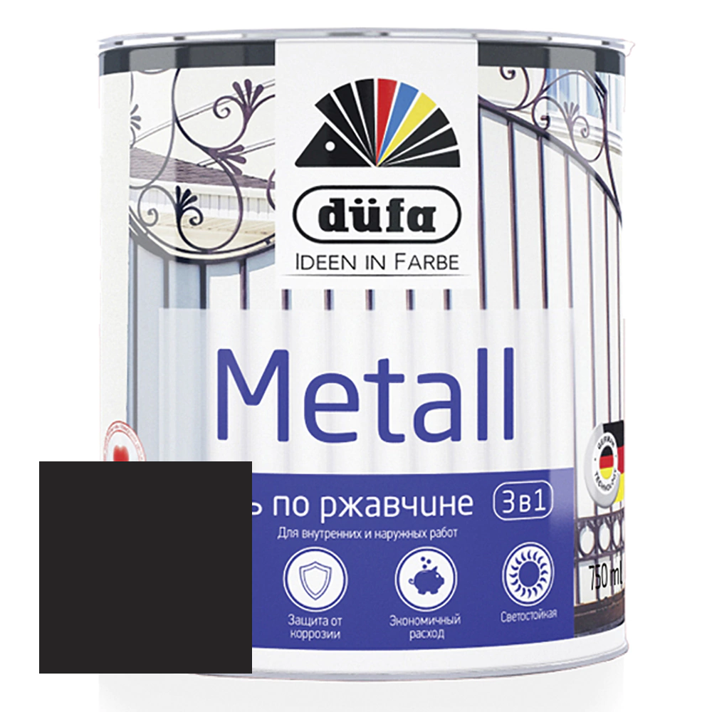 Эмаль по ржавчине гладкая 3в1 Dufa Retail Metall RAL 9005 черная 0,75 л и другие товары категории Эмали по ржавчине доступны в каталоге Краски и строительная химия интернет-магазина Бауцентр по низким ценам. Ознакомьтесь с подробными характеристиками и описанием, а также отзывами о данном товаре, чтобы сделать правильный выбор и заказать товар онлайн.