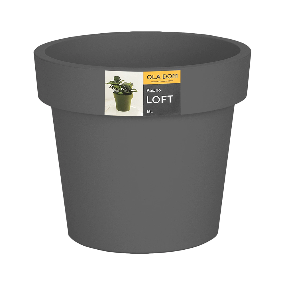 Кашпо пластиковое LOFT OLA DOM серое d33 см h28,5 см 16 л