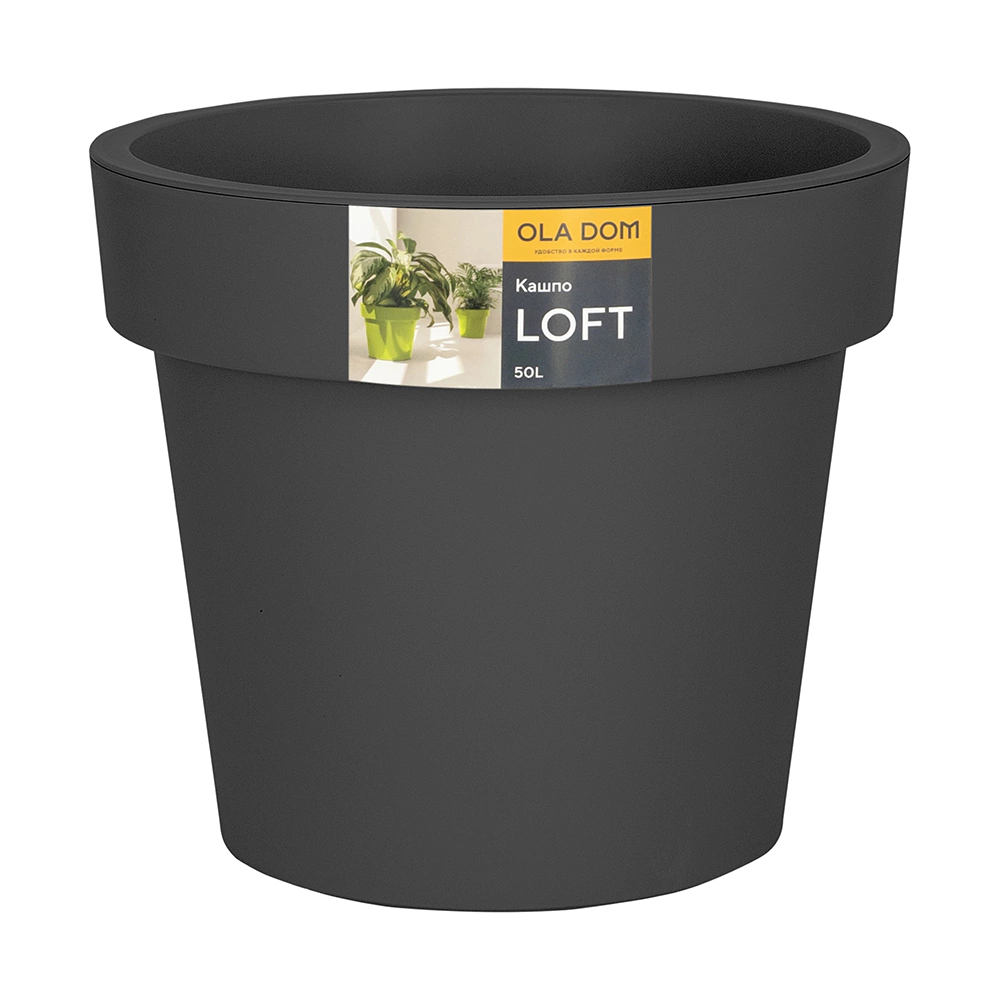 Кашпо пластиковое LOFT OLA DOM серое d48 см h42 см 50 л