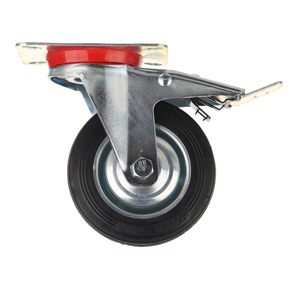 Колесо промышленное поворотное d100 мм на площадке с тормозом