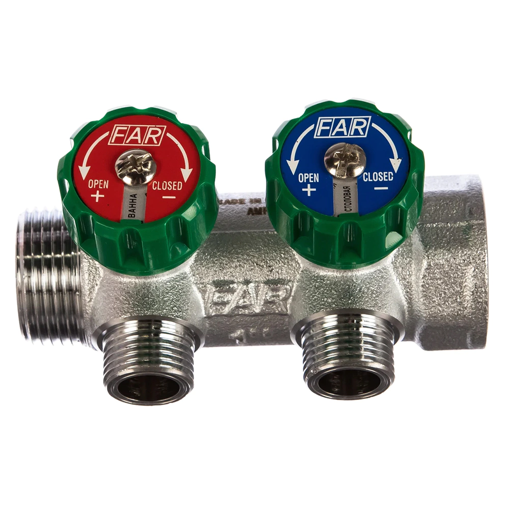 Коллектор FAR 2 выхода 1x3/4 РВ-РН с вставкой под плоское уплотнение