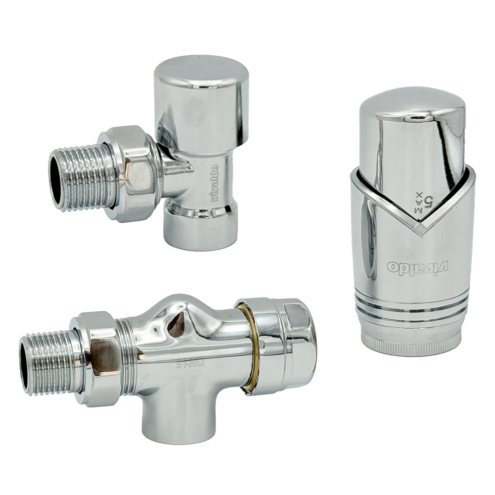 Комплект вентилей для подключения радиатора 1/2" термостатический осевой хром VIVALDO
