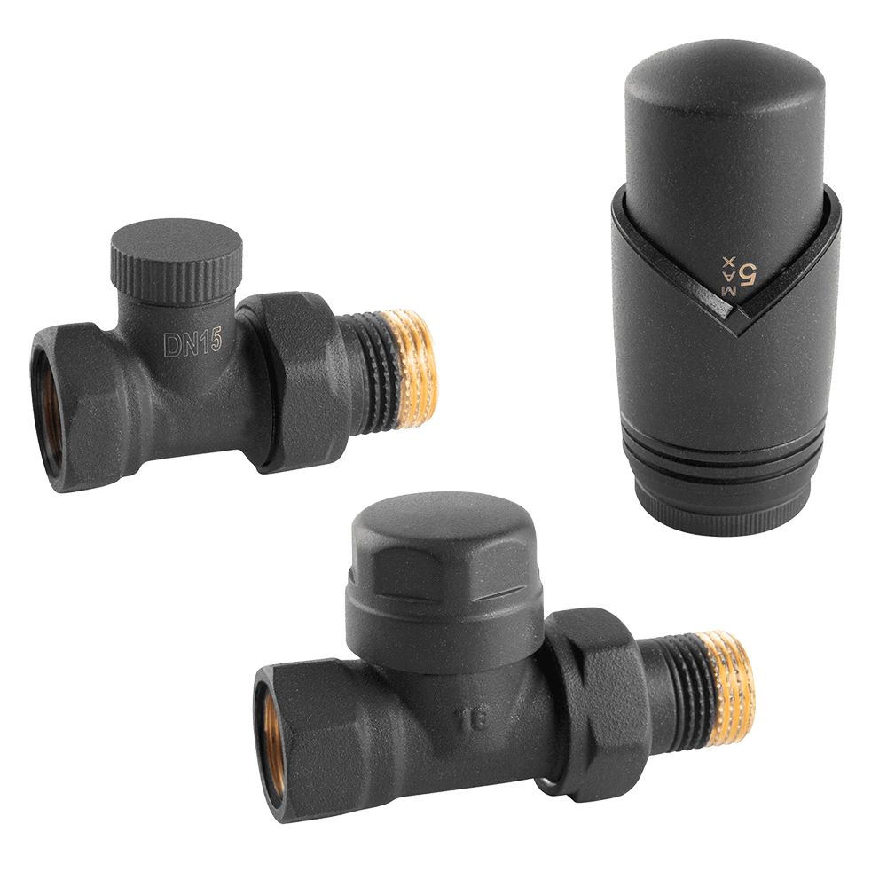 Комплект вентилей для подключения радиатора 1/2" термостатический прямой антрацит VIVALDO