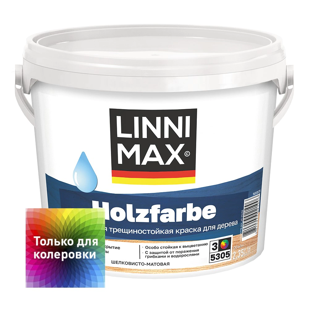 Краска для дерева акрилатная LINNIMAX Holzfarbe прозрачная (база 3) 2,35 л