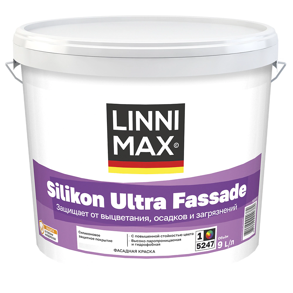 Краска фасадная LINNIMAX Silikon Ultra Fassade силиконовая 9 л белая (база 1) и другие товары категории Дисперсионные краски для наружных работ доступны в каталоге Краски и строительная химия интернет-магазина Бауцентр по низким ценам. Ознакомьтесь с подробными характеристиками и описанием, а также отзывами о данном товаре, чтобы сделать правильный выбор и заказать товар онлайн.
