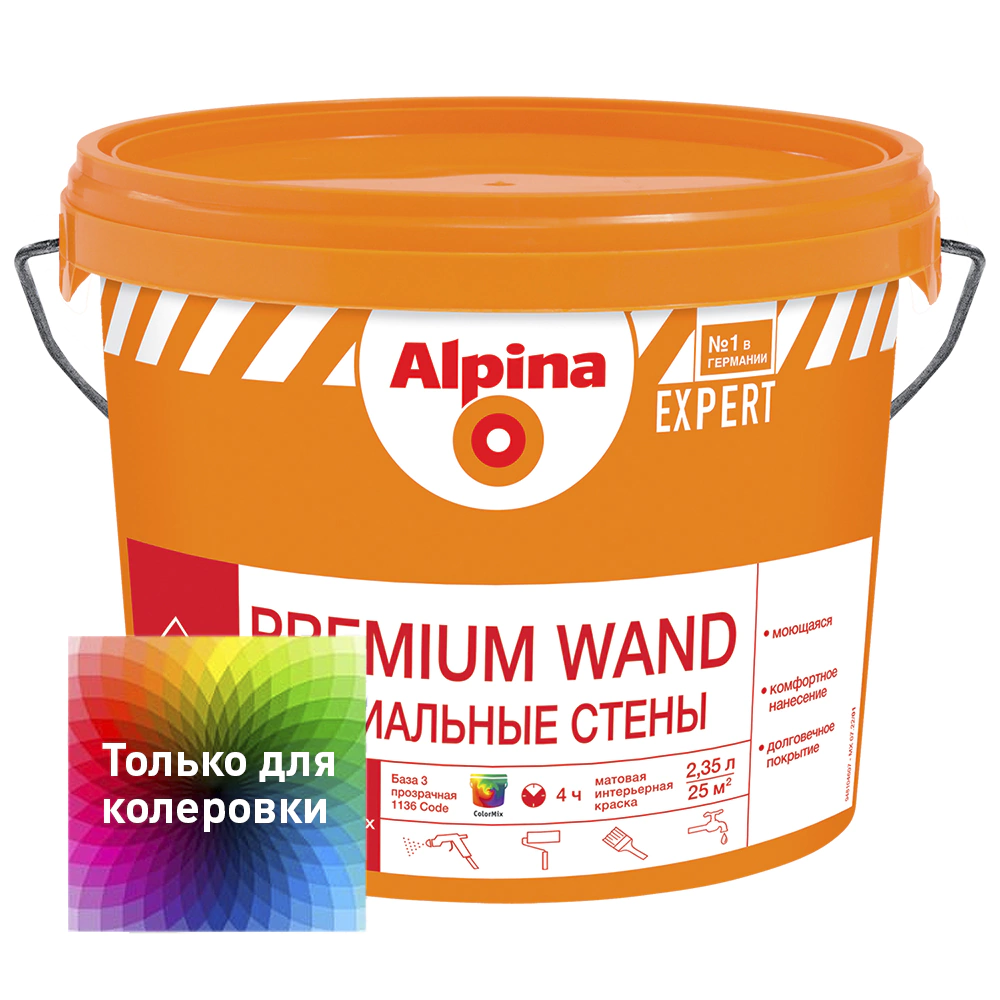 Краска моющаяся Alpina EXPERT Premium Wand 2,35 л прозрачная (база 3)