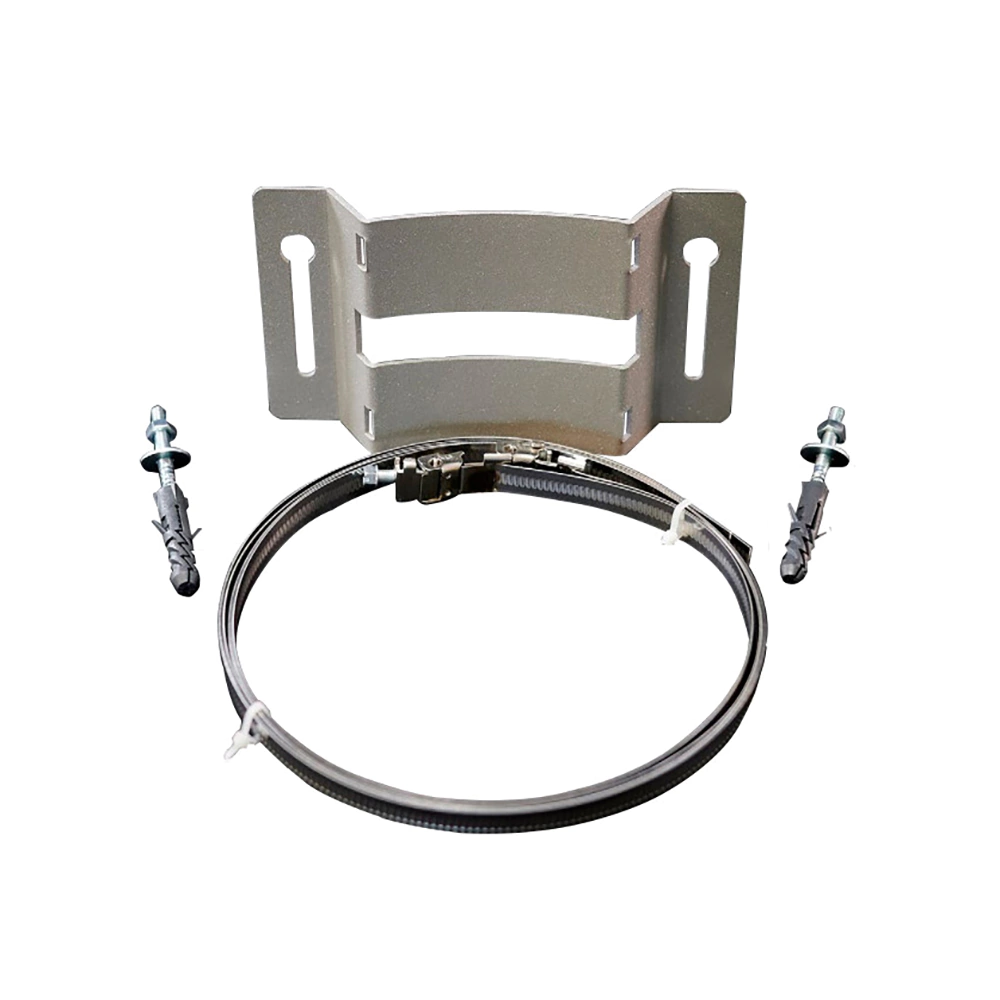 Кронштейн стальной окрашенный, хомут червячный 12х1250 мм (2 шт), дюбель 10х50 мм (2 шт), шпилька сантехническая М6х80 (2 шт), гайка М6 (2 шт), шайба М6 увеличенная (2 шт)