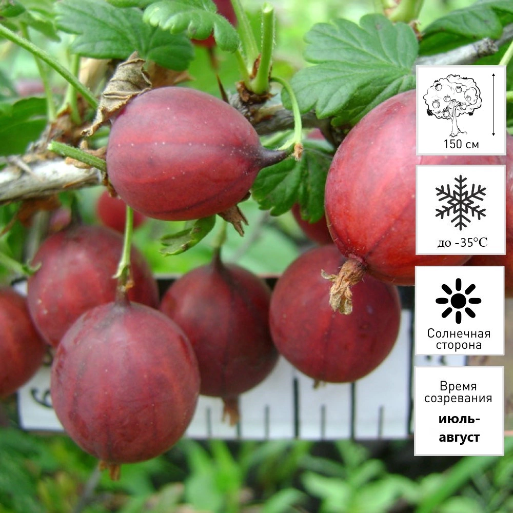 Побеги с шипами. Ягоды массой от 4,5 до 8 г, округло-овальной формы, темно-красные, с восковым налетом.