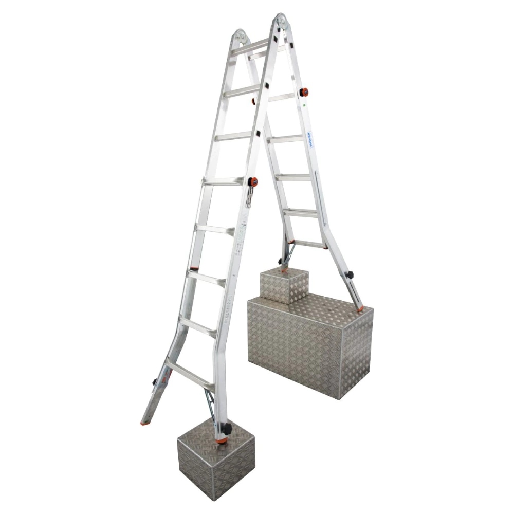 Лестница шарнирная телескопическая на выдвижных опорах 4x5 ступеней Krause Televario