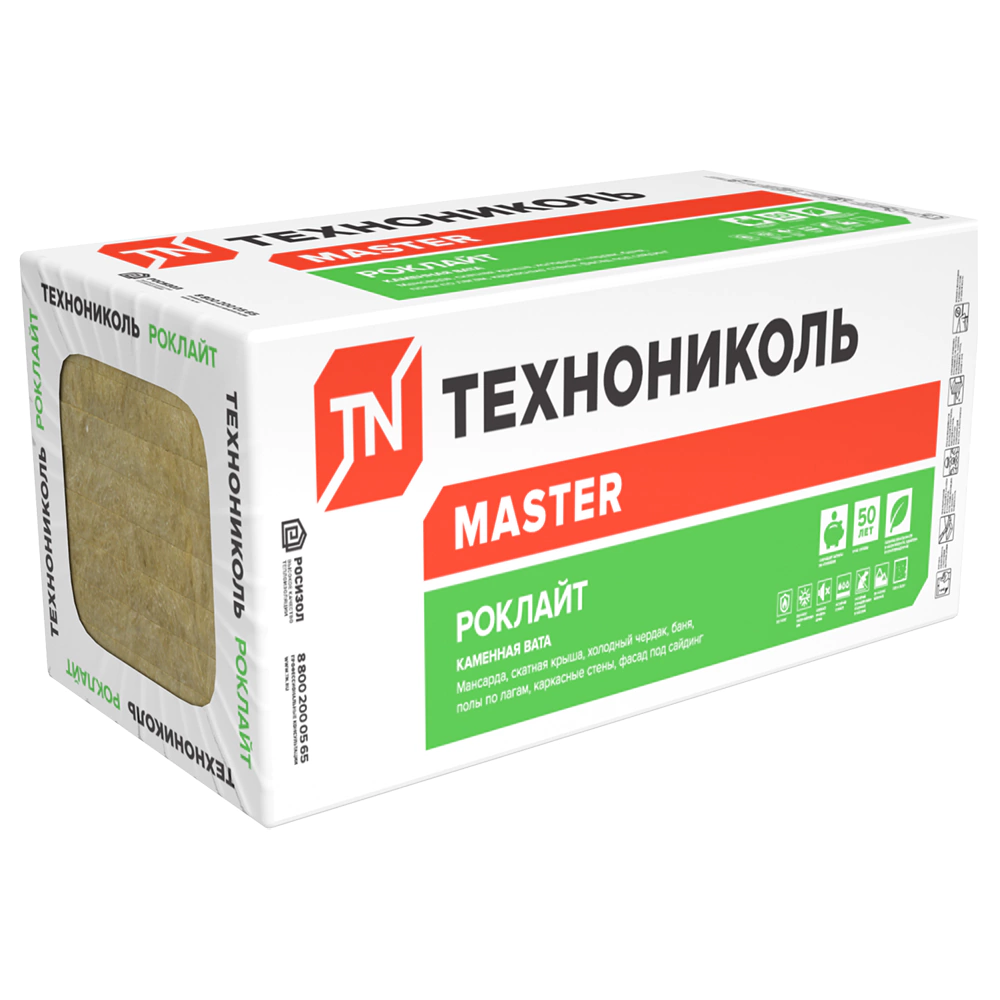 Минеральная вата 50 мм 1200х600 мм 35 кг/м3 8,64 м2 ТЕХНОНИКОЛЬ Роклайт