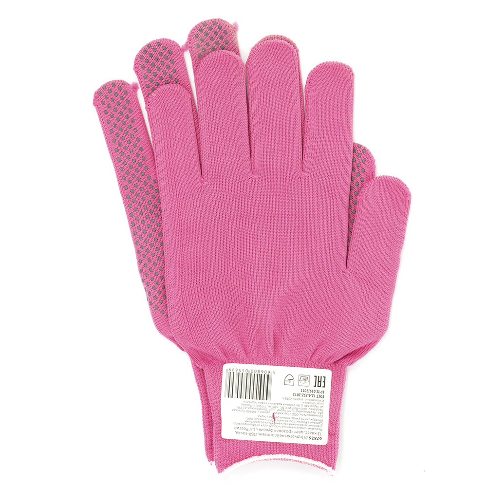 Перчатки садовые размер 9 (L) с ПВХ точкой розовая фуксия