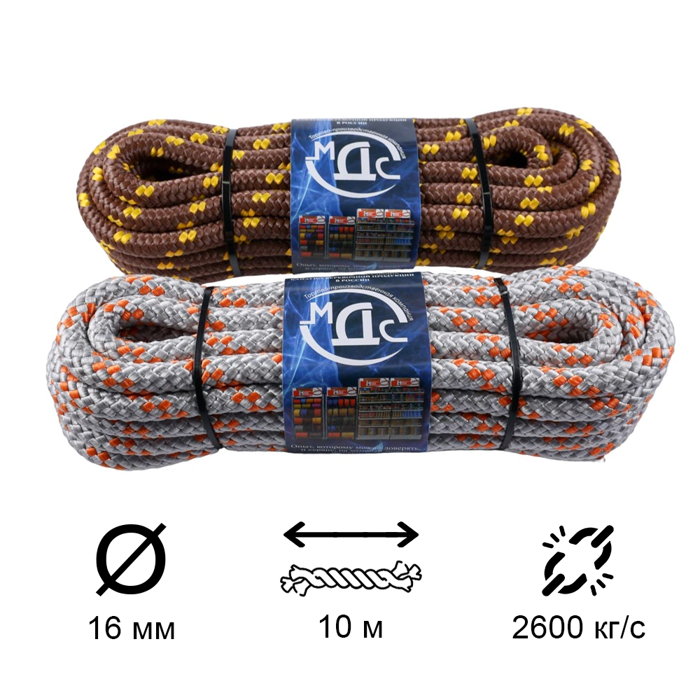 Плетеный канат полипропиленовый 16 мм 16-прядный 10 м с сердечником