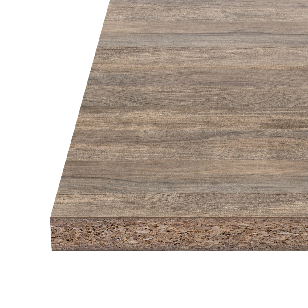 Для увеличения прочности материала на поверхность плиты наносят ламинированный рисунок с добавлением меламиновой смолы.