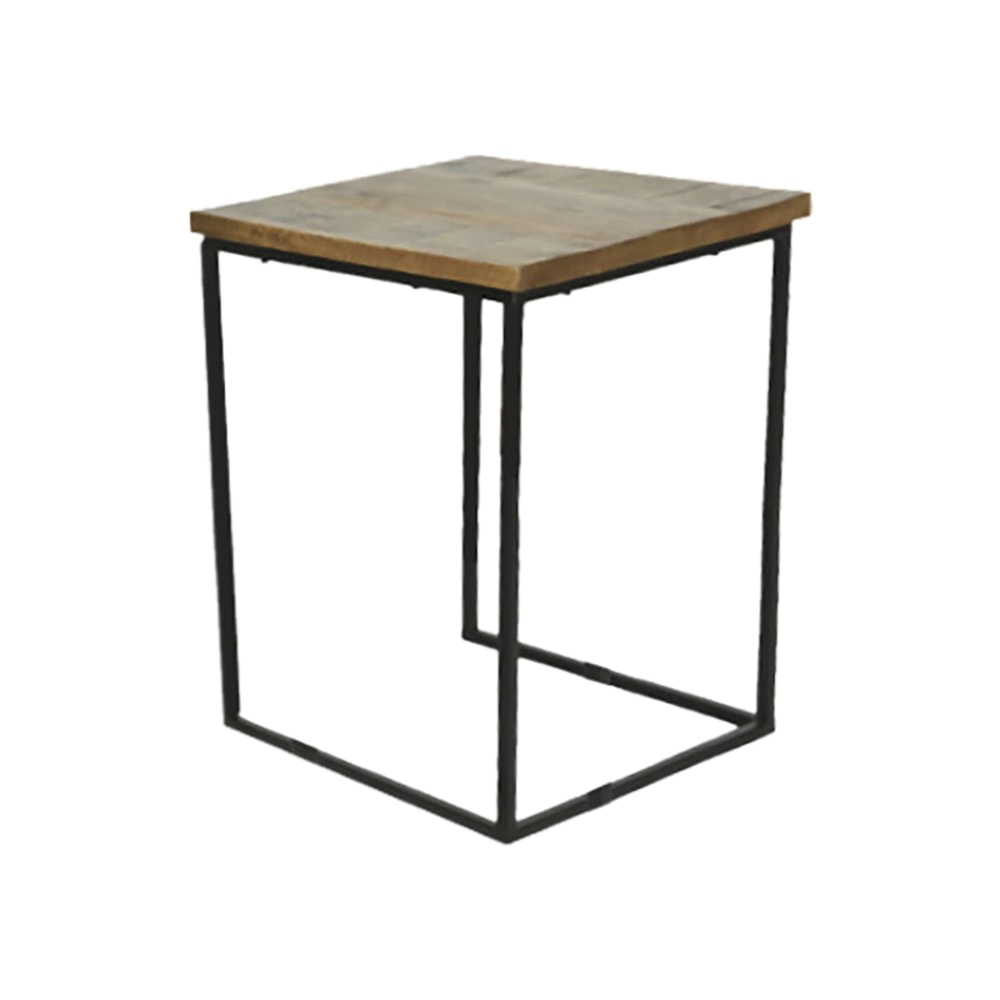 Конструкция выполнена из черного металлического основания и деревянного верха.