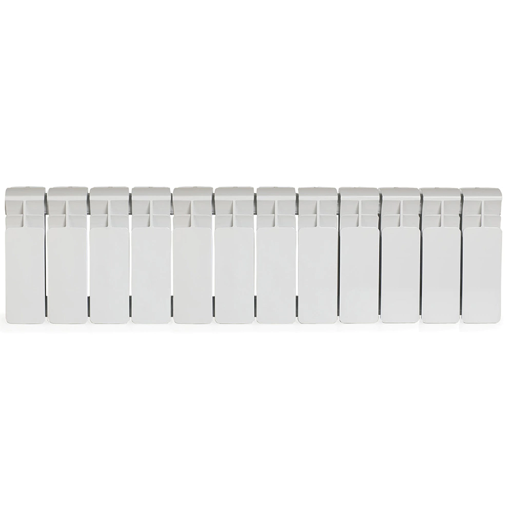 Секции выполнены из стальной трубы, залитой под высоким давлением высококачественным алюминиевым сплавом, обладающим высокими прочностными и антикоррозионными свойствами. Надежность межсекционного соединения достигается за счет фрезерования торца коллектора под прокладку типа O-ring из материала EPDM.