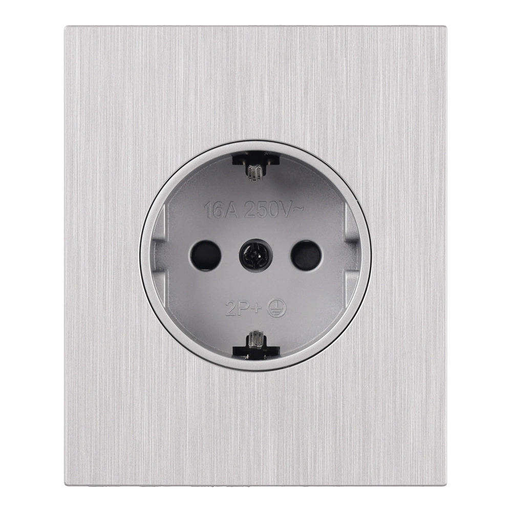 Розетка с заземлением рифленый алюминий без рамки EVERSON Лилиум