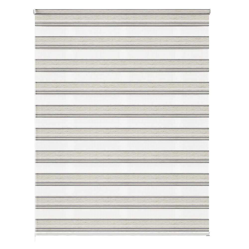 Отличие от обычных тканевых ролет - наличие двухслойного полотна. Полосы ткани располагаются по обе стороны вала и состоят из чередующихся полос полупрозрачного и непрозрачного материала.