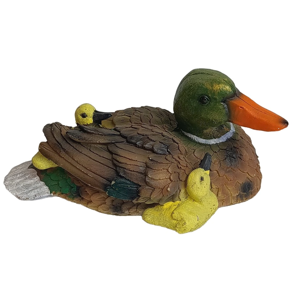 Садовая фигура Утка с утятами плывет 14х30х16 см