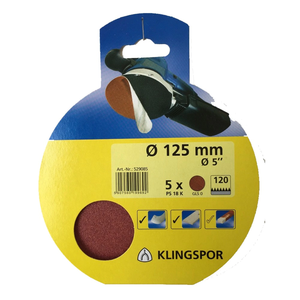 Шлифовальные круги Р120 125 мм 5 шт KLINGSPOR