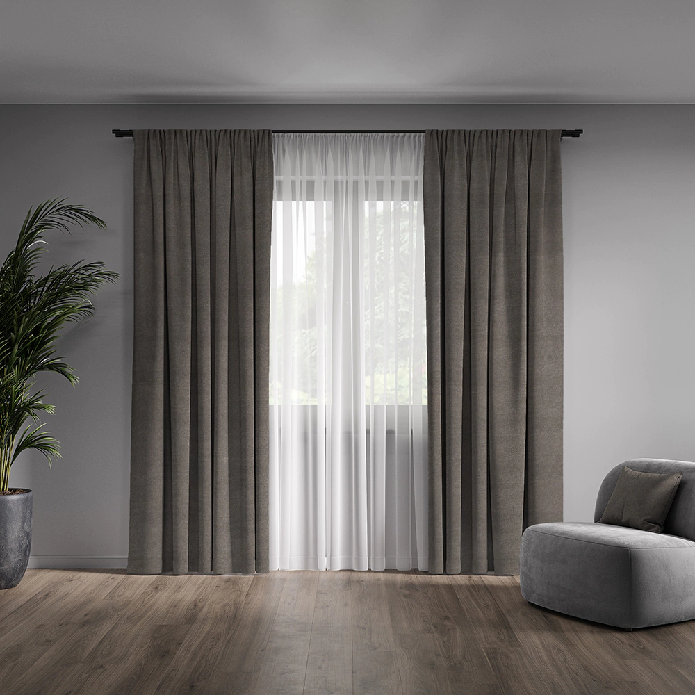 Штора подшита со всех сторон, оснащена шторной лентой. Подходит для всех видов карнизов.