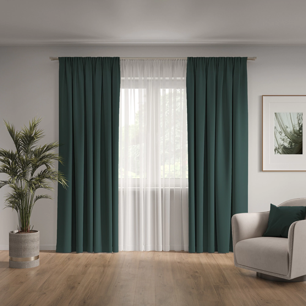 Штора подшита со всех сторон и оснащена шторной лентой. Подходит для всех видов карнизов.