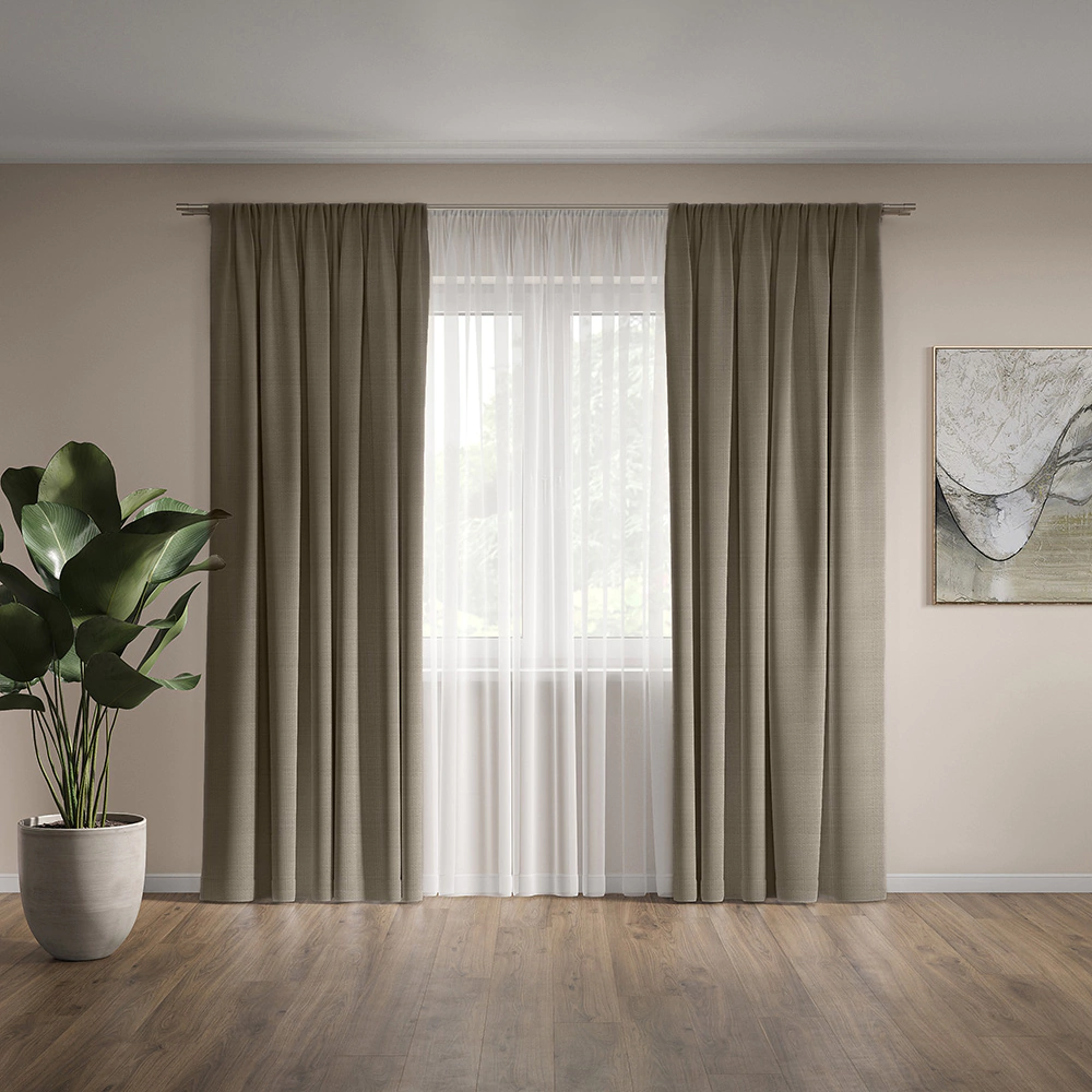 Подшита со всех сторон. Оснащена шторной лентой. Подходит для всех видов карнизов.