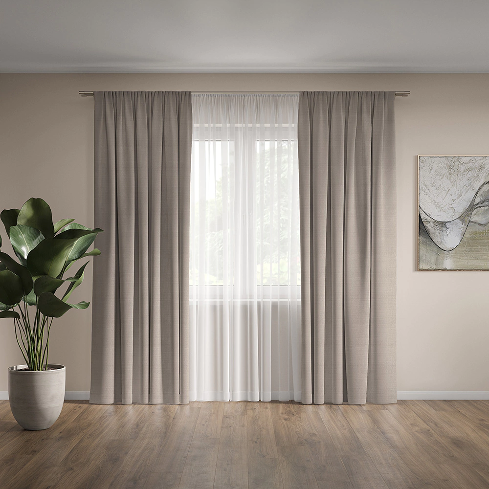 Штора Лен 160х260 см светло-коричневая