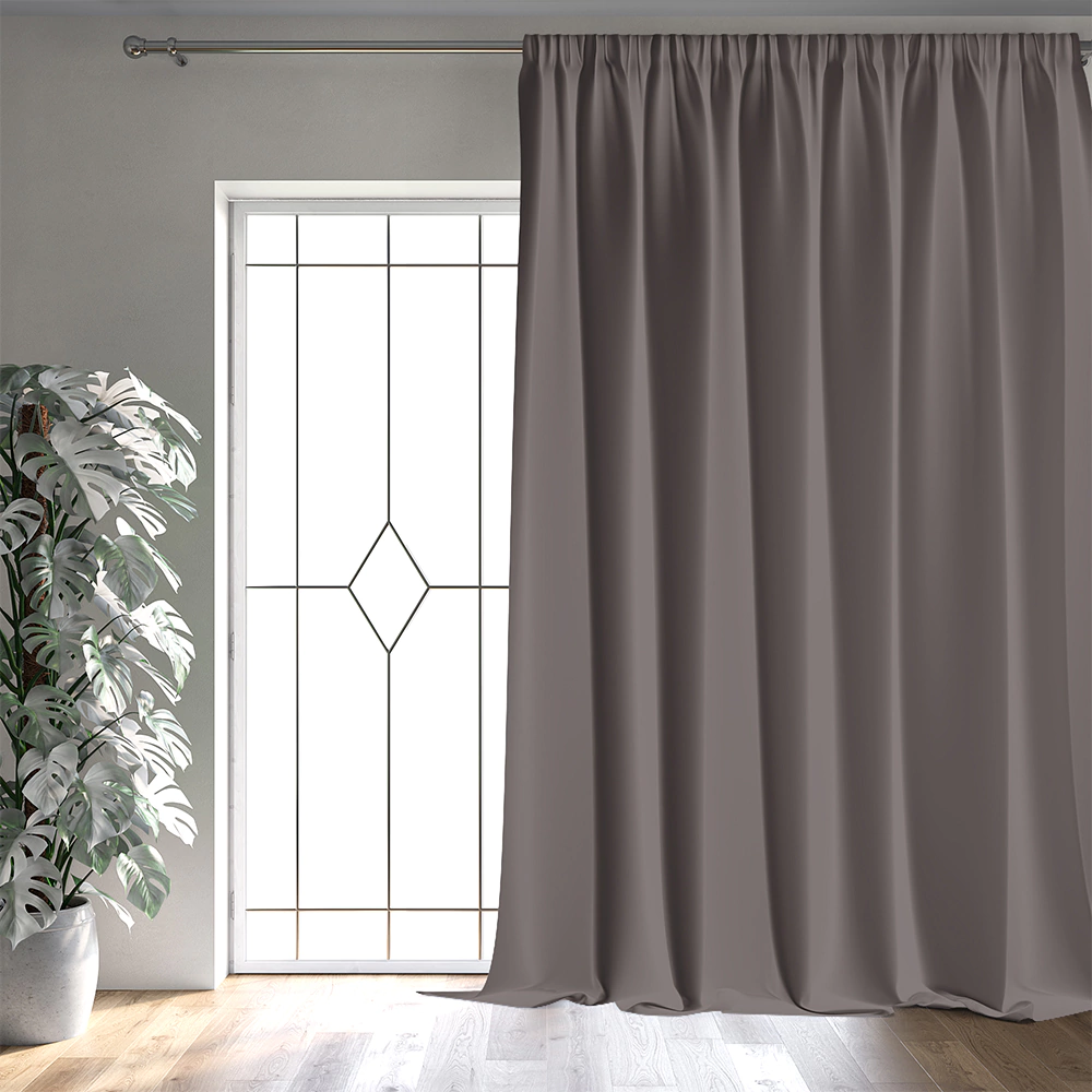 Изделие со всех сторон подшито, оснащено шторной лентой.