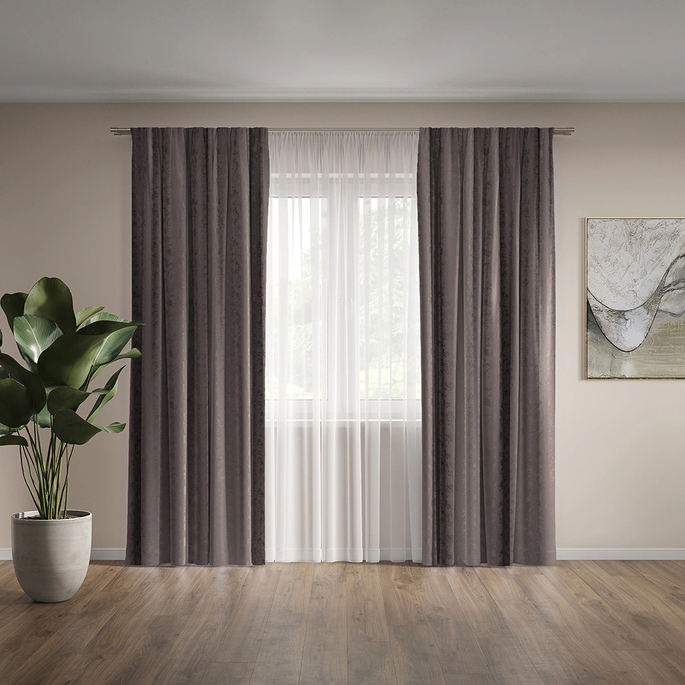Подшита со всех сторон. Оснащена шторной лентой. Подходит для всех видов карнизов.