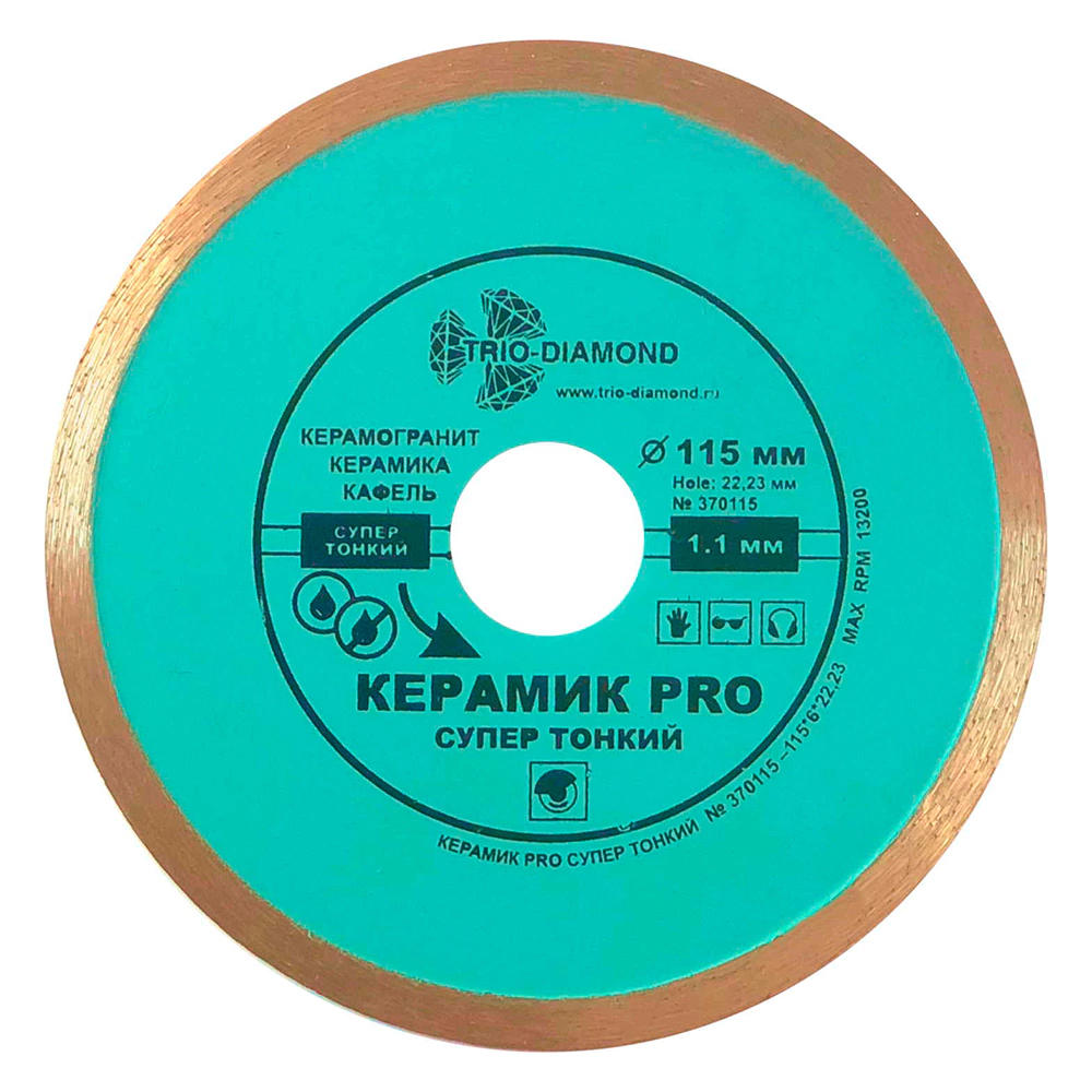 Сплошной алмазный диск по керамограниту Trio-Diamond Керамик PRO 115x1,1x22,2 мм