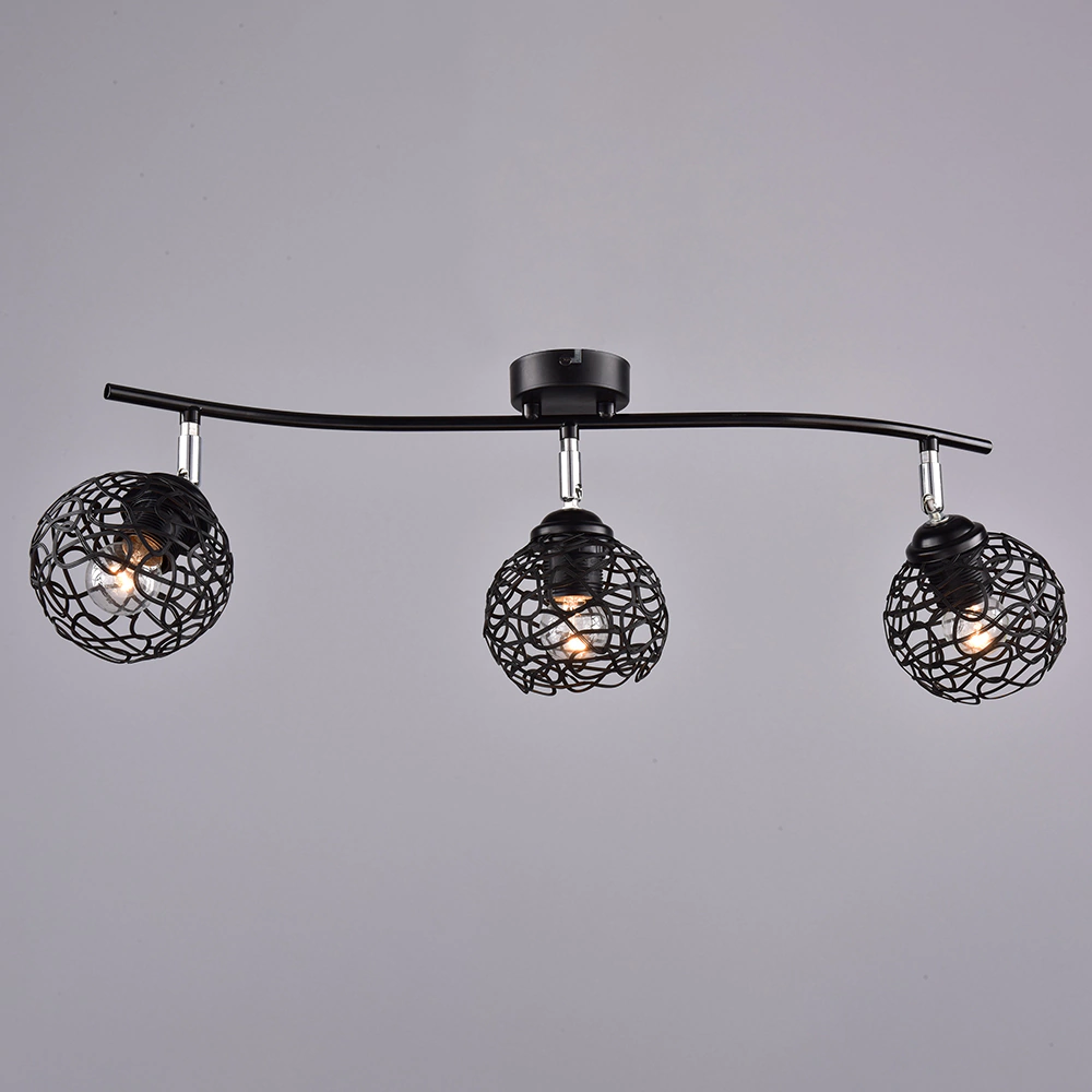 Решетчатые плафоны черного матового цвета имеют шарообразную форму.