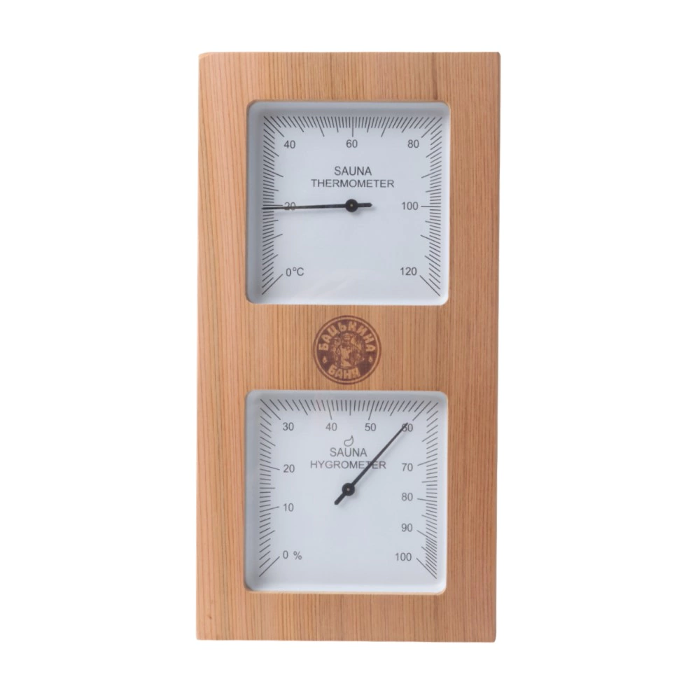 Функциональный и стильный прибор для измерения температуры и влажности воздуха в бане или сауне.