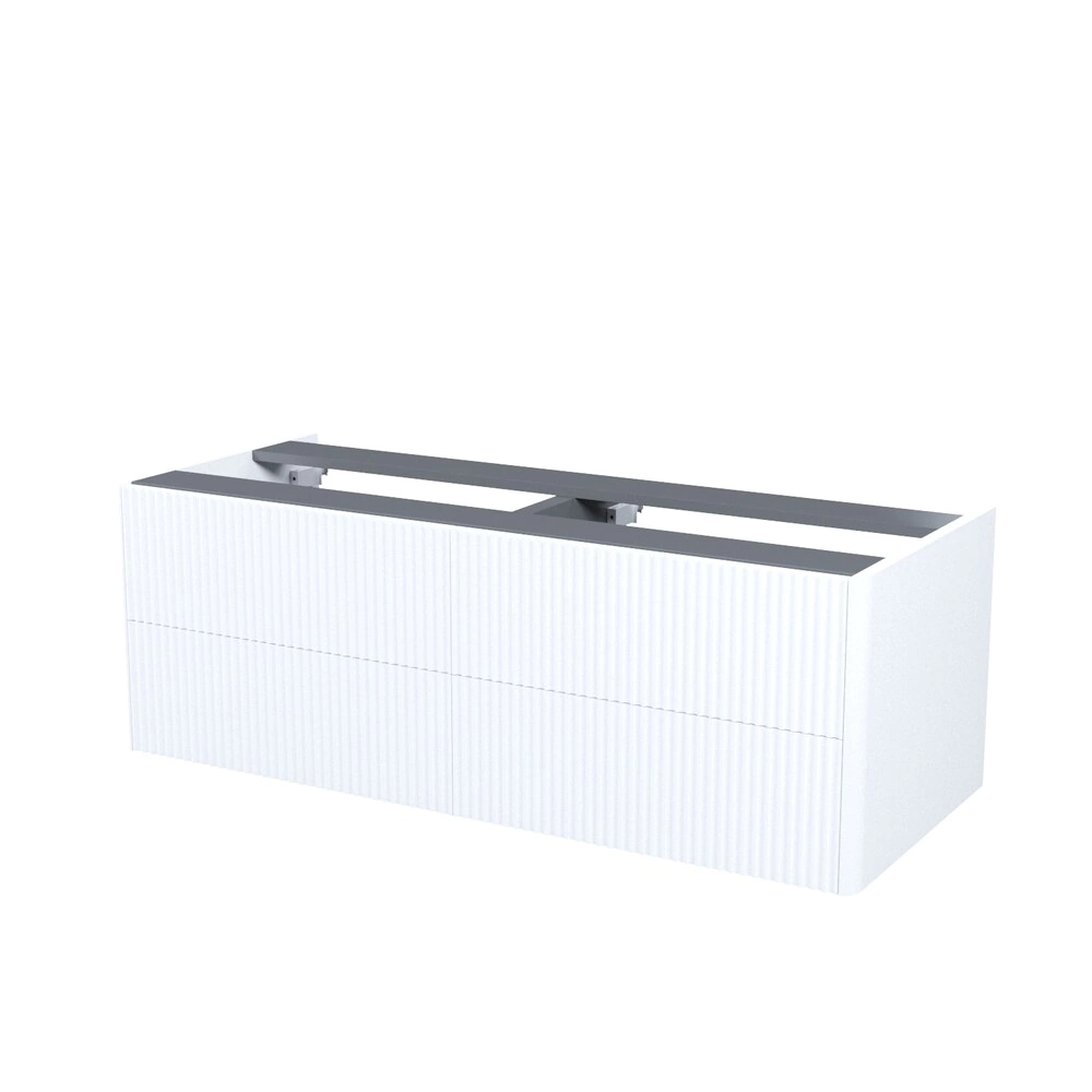 Тумба для ванной комнаты оснащена четырьмя вместительными ящиками полного выдвижения и встроенными доводчиками с системой плавного закрывания.