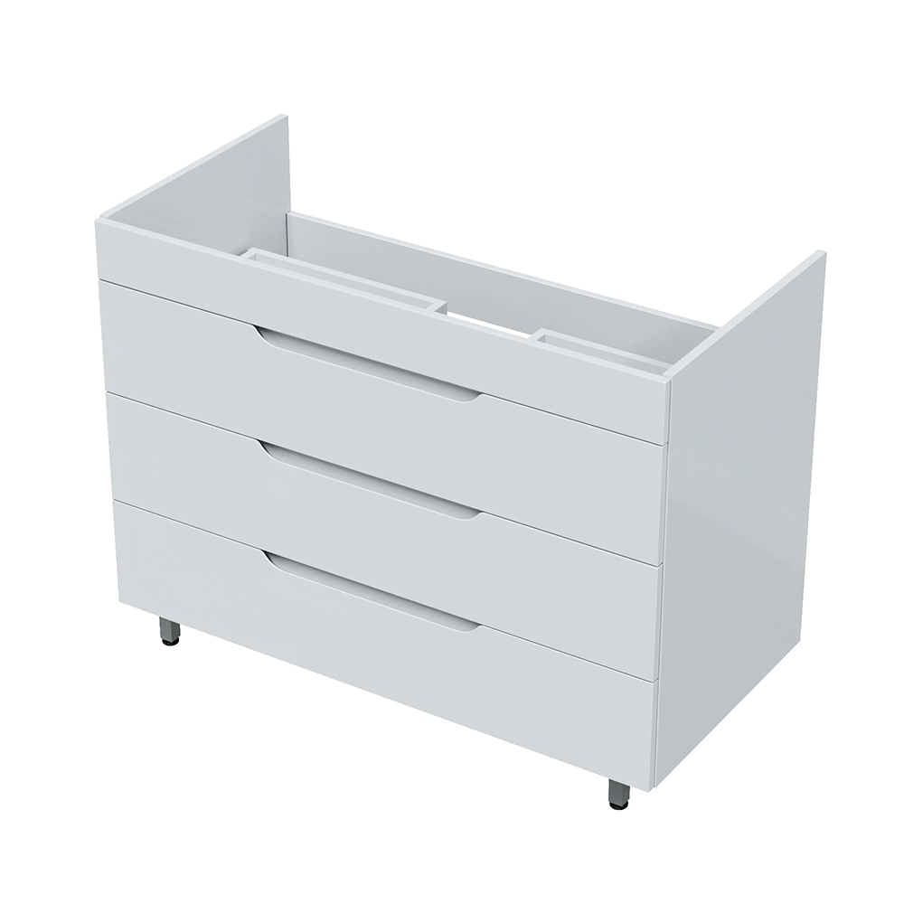 Тумба оснащена тремя ящиками частичного выдвижения на скрытых направляющих с системой мягкого закрывания.
