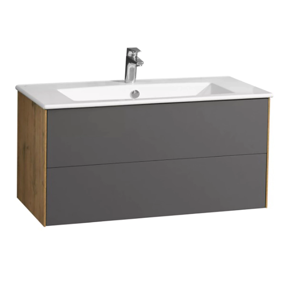 Тумба с раковиной AQUATON Сохо 100 см подвесная дуб, графит
