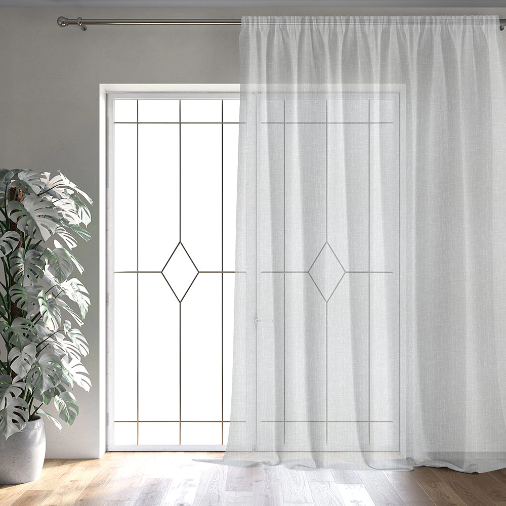 Легко поддается драпировке, пропускает свет и воздух, не накапливает пыль, не требует дополнительного ухода.