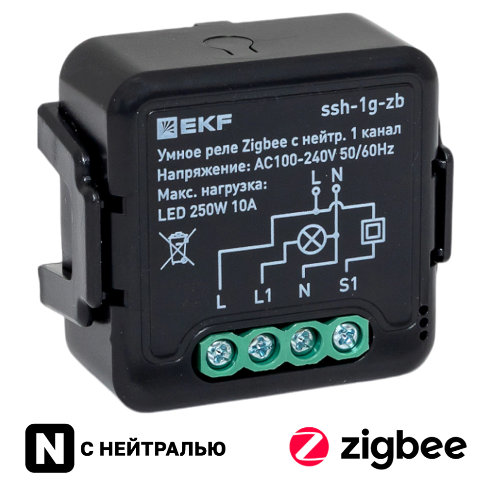Умное реле в подрозетник 1-канальное с нейтралью Zigbee EKF Connect Select