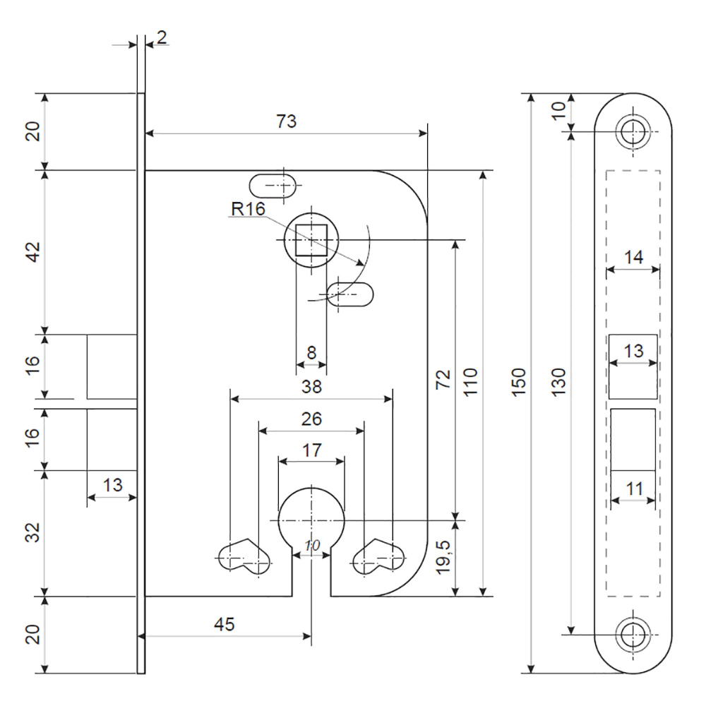 Замок врезной под цилиндр для финских дверей Apecs 6000-CR хром