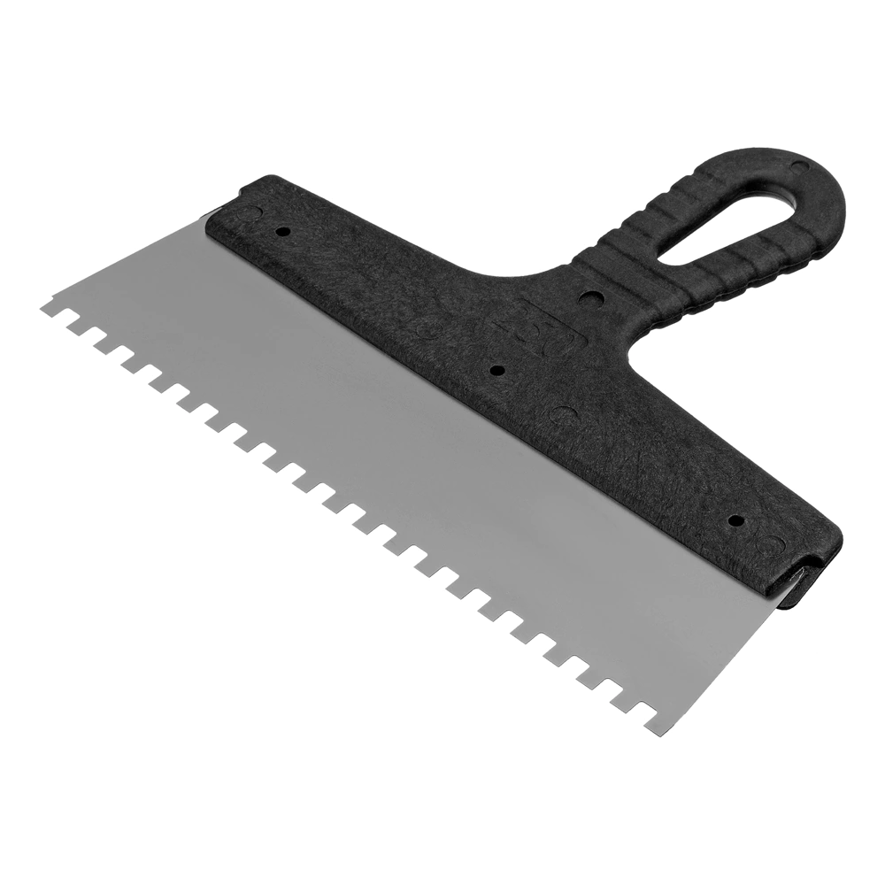 Квадратные зубья облегчают нанесение клеевого состава, позволяя равномерно распределять его по поверхности.
