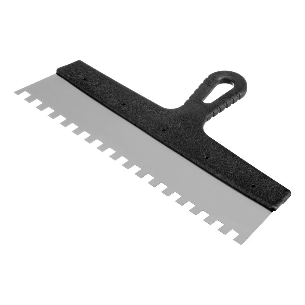 Квадратные зубья облегчают нанесение клеевого состава, позволяя равномерно распределять его по поверхности.