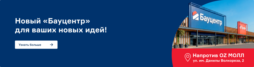 Бонусы открытия начисляются с 6 апреля по 31 мая 2026 года только для покупателей, совершивших покупку только в новом магазине «Бауцентр» на ул. им. Д.Волкореза, 2. При покупках на сайте или в приложении бонусы открытия не начисляются.